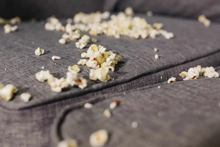 Start by picking up and trashing the spilled popcorn and then blot the affected area with a microfiber cleaning cloth immediately to ensure the butter does not seep into surfaces, which ultimately multiplies the cleaning task. To avoid finding stray kernels in your client’s chair the next day, you must also ensure that the makeshift theatre space is swept and vacuumed immediately after the movie.